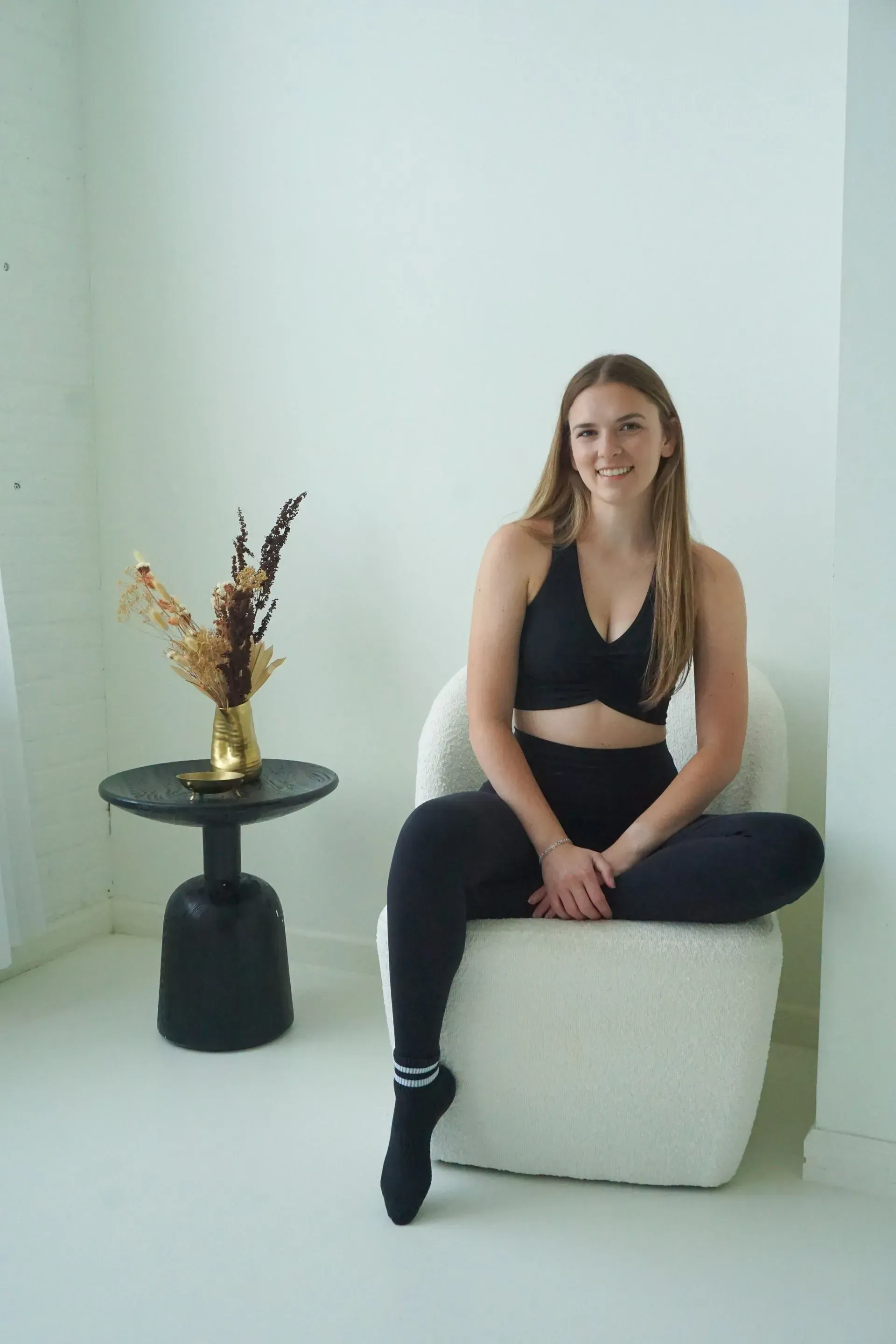 Hannah — our newest mat Pilates instructor and a true ray of sunshine in the studio! Hannah’s passion for teaching shines through in every class, as she guides clients through strong, mindful flows that leave both body and mind feeling refreshed. Beyond the mat, she’s an avid hiker, a devoted family person, and a big believer in giving back to the community. Her warmth, energy, and genuine care make every session feel welcoming and empowering. We’re so lucky to have Hannah bringing her expertise — and her heart — to The Pilates Club!